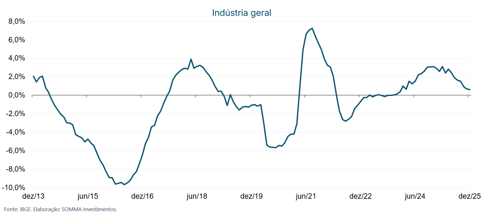 De forma mais abrangente, o crescimento da produção industrial, ao desacelerar de +3,1% em 2024 para +0,6% em 2025, evidencia o impacto negativo que o setor sofreu nos últimos meses, em meio à combinação de importações ainda expressivas, tarifaço, juros elevados e o gradual enfraquecimento da demanda doméstica.